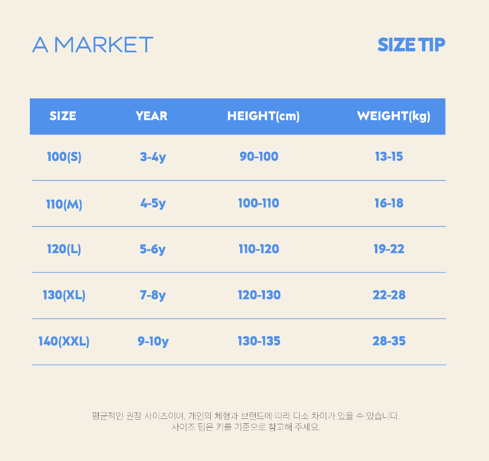 * 업체 표준 사이즈로 아이 체형이나 핏에 따라 개인차가 있을 수 있습니다.